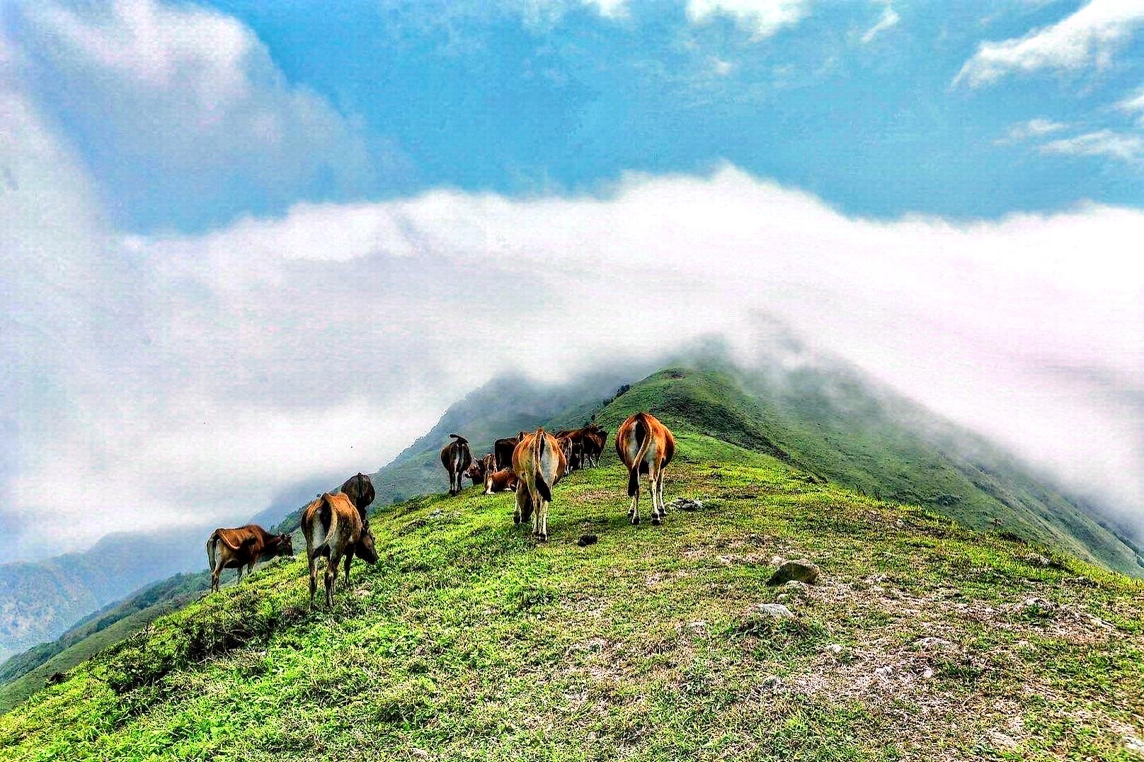 其中,一官為麓湖頂,海拔1253米,是三官山的最高峰,同時(shí)是高州市第二高峰,二官為“三腳架峰”,三官為“肴髻肚峰”。三座山峰連綿起伏,數(shù)干畝綠草如茵,牛群覽食嬉戲。天朗氣清之秋日,登頂游覽,有頂天立地之感。